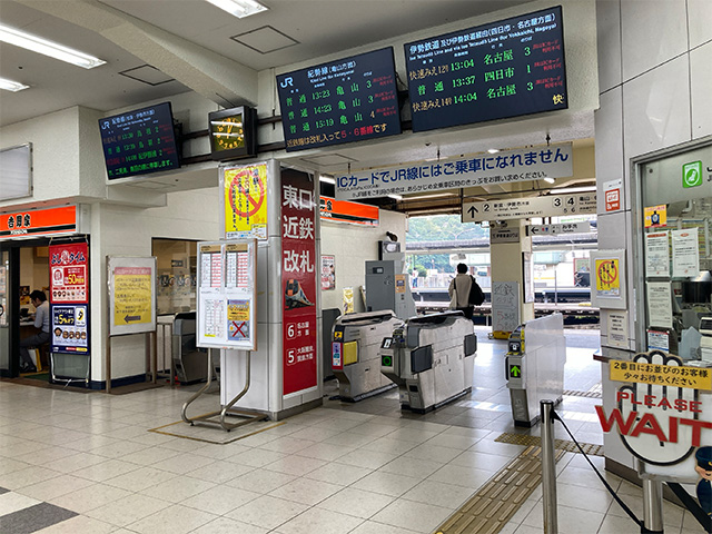 After getting off at Kintetsu Line, go up the stairs towards the exit