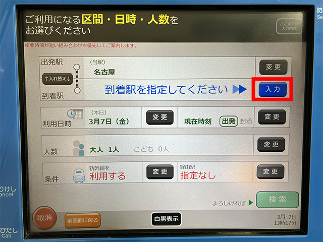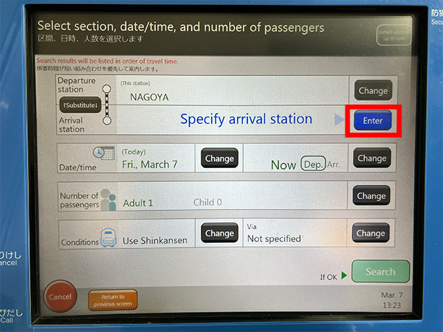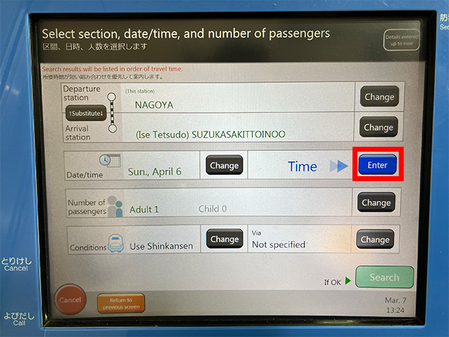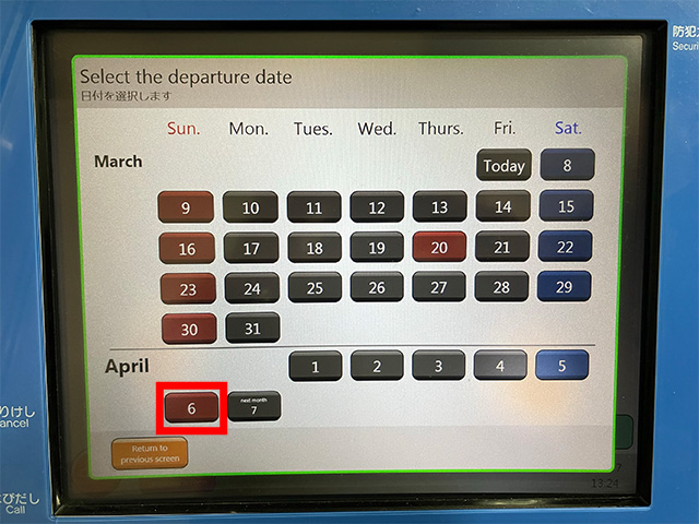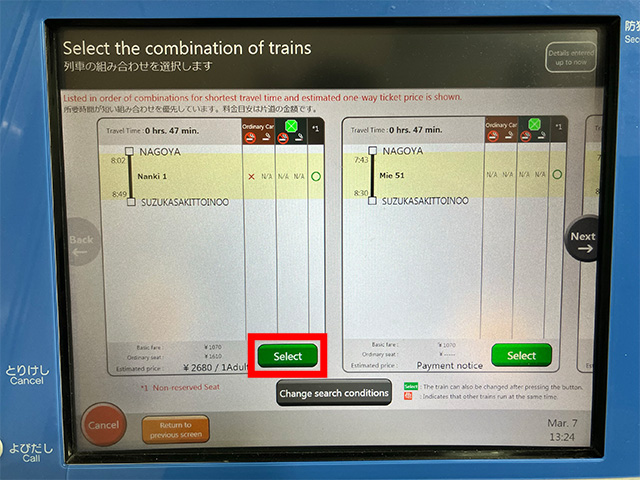 ・If you are taking a limited express train (when purchasing a limited express ticket), select your desired limited express train.