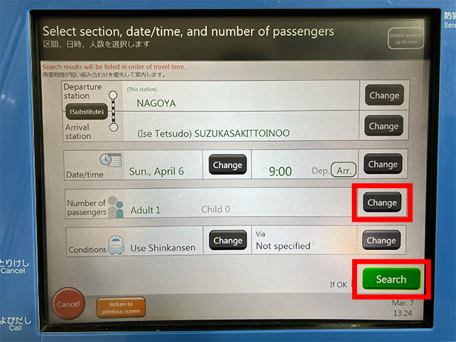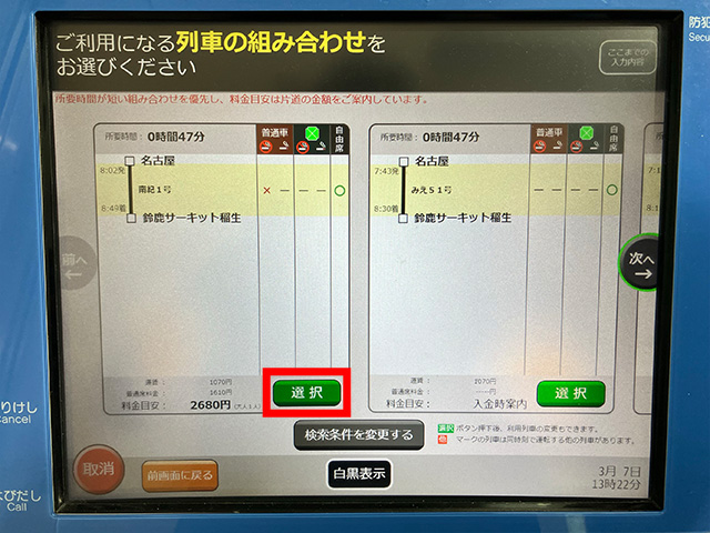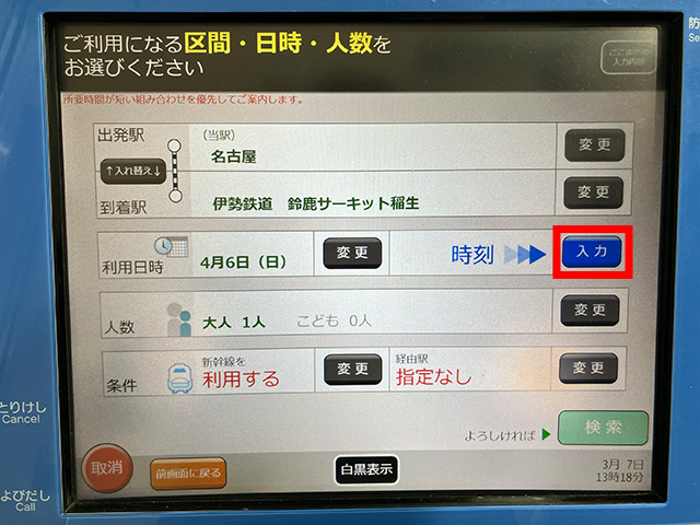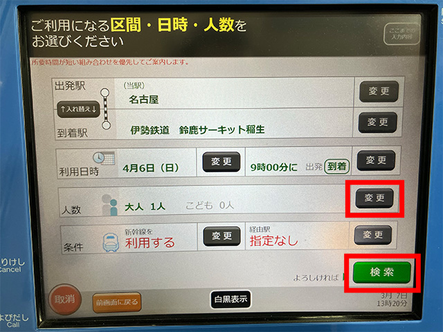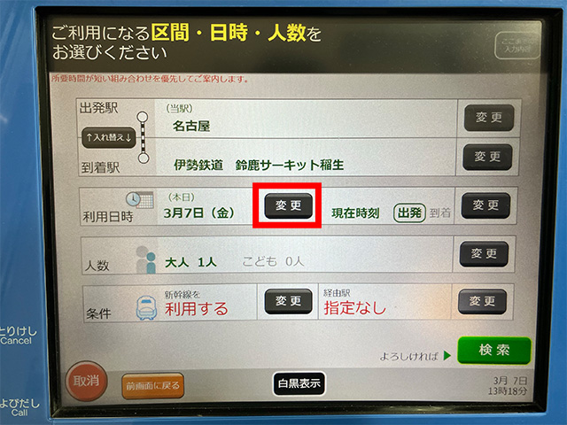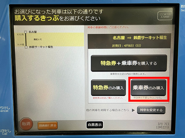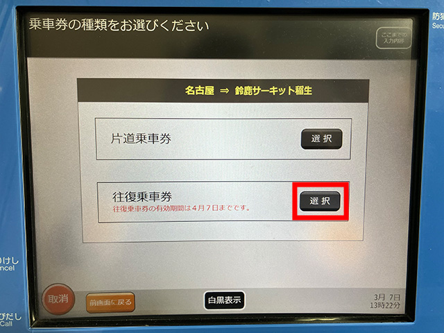 ・If you use the "Reserved Seat Ticket Machine" at "Nagoya Station", you can purchase a "Round-Trip Ticket" for Nagoya ⇔ SUZUKA CIRCUIT PARK Ino. It is recommended to buy the round-trip ticket as it eliminates the need to purchase tickets at SUZUKA CIRCUIT PARK Ino Station.
