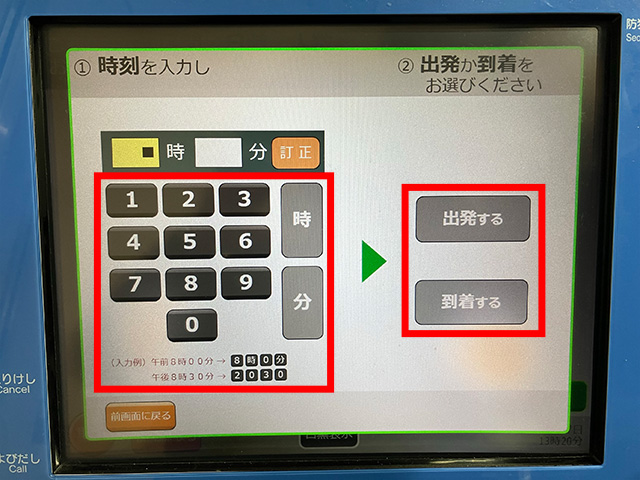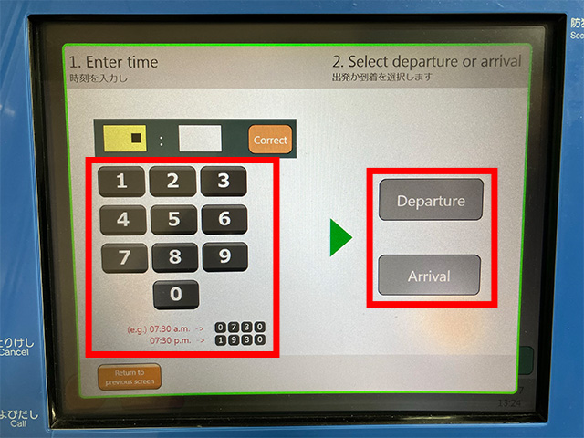 Select "Input" for the usage date and enter the desired departure or arrival time.