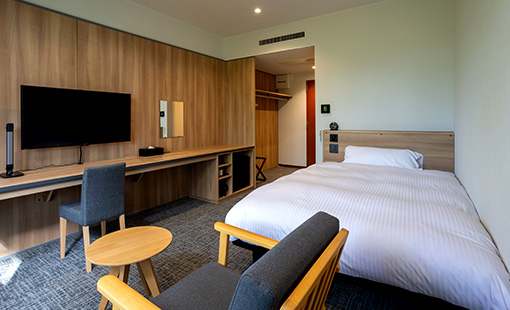 Wide-size desk anddouble-size bed Single room suitable for business use