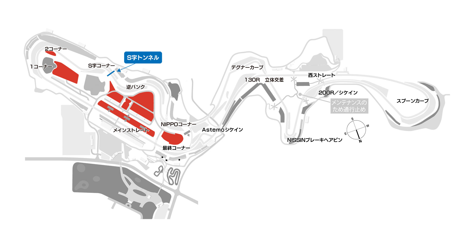 ・Paddock (Gekikan Area, S-Curve Tunnel)* Admission to the paddock is not allowed on Wednesday, October 22.On Friday, October 24, only those with passes allowing paddock admission may enter. Please note that admission tickets alone do not grant access.