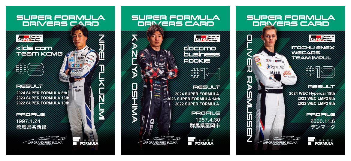 When distributing group wristbands and at the 16-23 ZERO Yen Pass reception, we will present a Super Formula Driver's Card!Let's pay attention to the card players and watch the race!