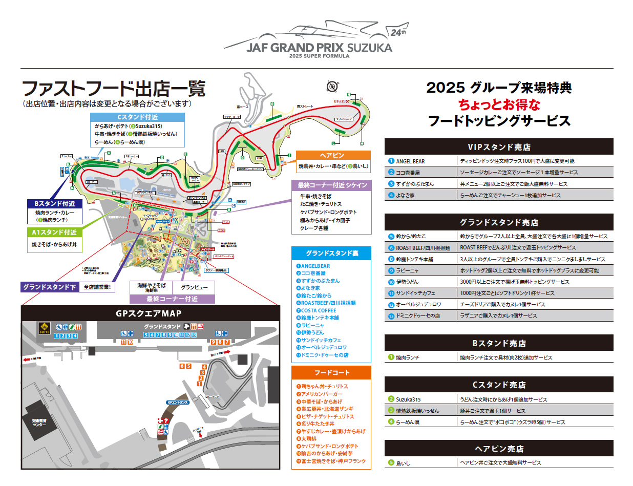 A little happy topping service at participating stores!At the food outlets around the Grandstand, if you present your wristband at the time of ordering and meet the conditions, you can receive additional toppings or upgrade services.