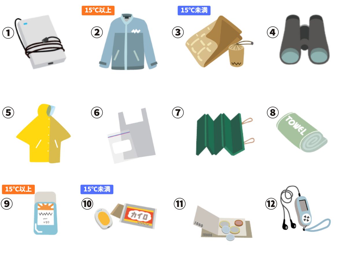 - If the temperature is on the higher side, short sleeves are fine, but be sure to bring a long-sleeve shirt you can throw on just in case. A backpack that leaves your hands free is recommended. It’s also convenient to have a smartphone shoulder bag or waist pouch that allows easy access to your phone.