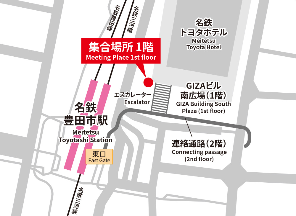 - 名鉄豊田市駅=貸切バス=鈴鹿サーキットP9駐車場~現地にてレース観戦~鈴鹿サーキットP9駐車場=貸切バス=名鉄豊田市駅