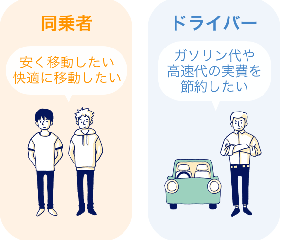ガソリン代や高速料金を割り勘で、移動コストを大幅に削減。