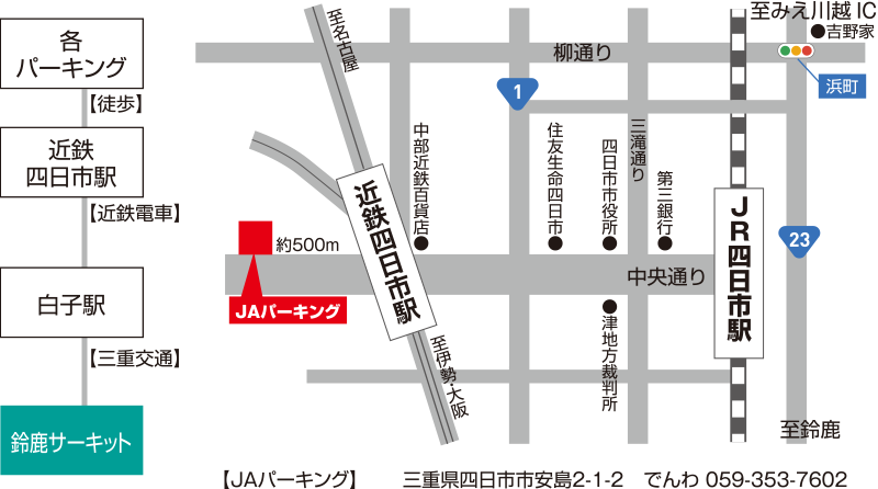 近鉄四日市駅近郊に駐車し、電車・バスへの乗りかえがお勧めです。