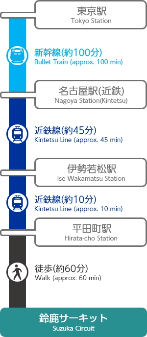 ※鈴鹿サーキットから出発するルート(帰路)は、大変混雑するため、非推奨ルートとなります。(2025年は最大180分待ち)