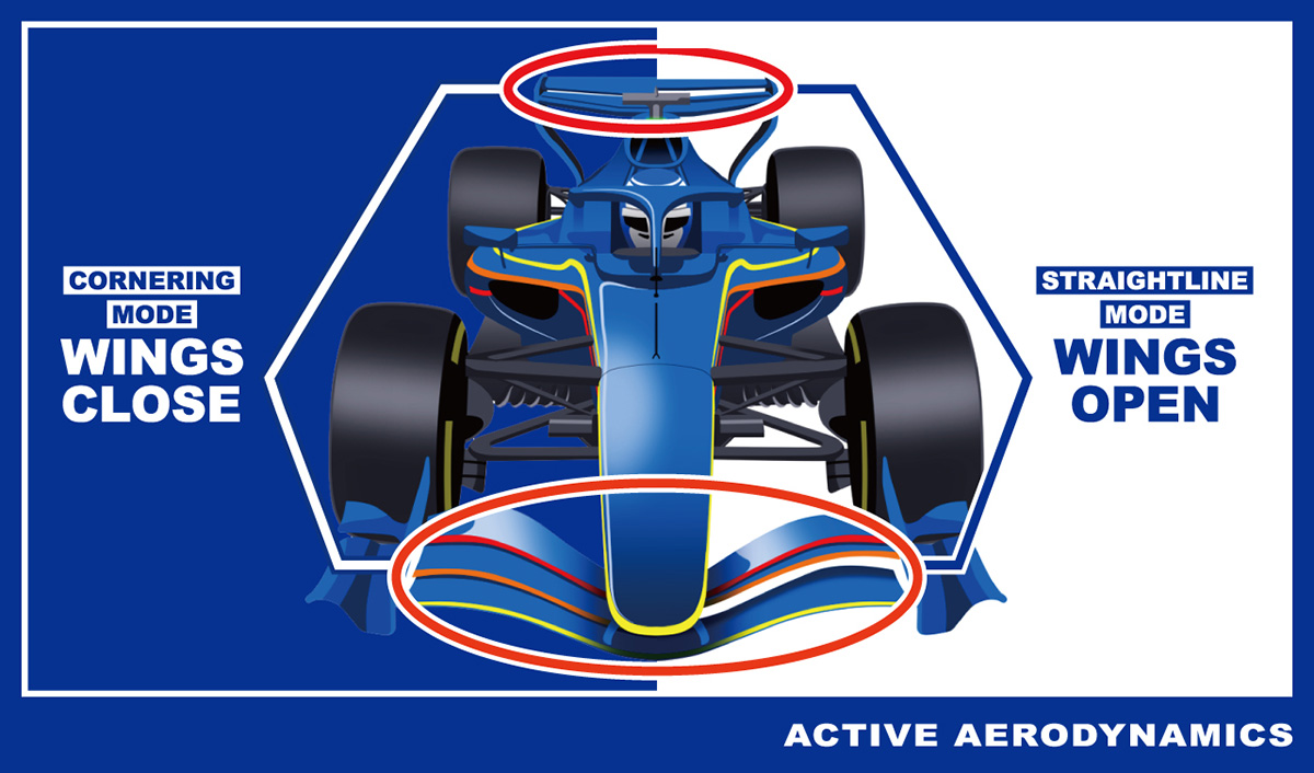 また、オーバーテイク促進の取り組みはこれだけではない。2026年からはF1史上初となる『アクティブ・エアロダイナミクス』システムが導入される。2025年までF1は可動式のリヤウイング『ドラッグリダクションシステム/DRS』を採用。定められた計測地点で先行車の1秒以内に入った後続車(追う側)が、コース上に設けられた『DRSゾーン』においてリヤウイングのフラップ角度を寝かし、空気抵抗を削減することで先行車(逃げる側)よりもストレートスピードを出すという仕組みで、2011年からF1のオーバーテイク促進に寄与してきた。