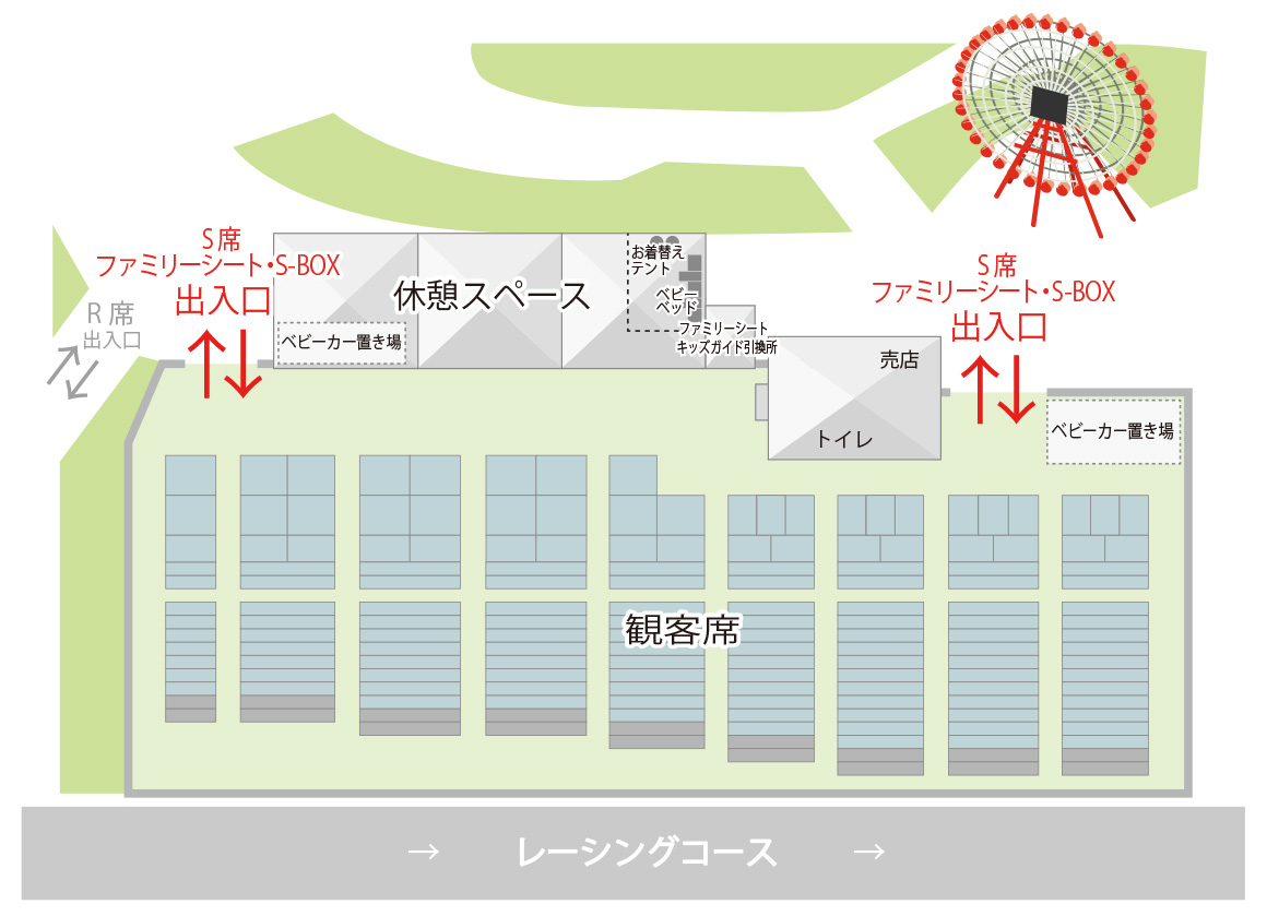 パークやGPスクエアに近いお子さま連れファミリー専用席として、最終コーナーに設定されている「S席ファミリーシート」。