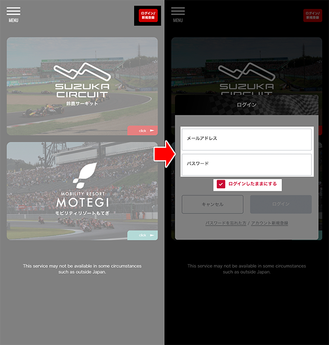 ・MobilityStationトップページ右上の「ログイン/新規登録」ボタンより、ログイン・新規登録を行ってください。