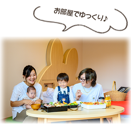ゆっくりとくつろげる専用ラウンジまたは、お部屋でお食事をお楽しみいただけます。