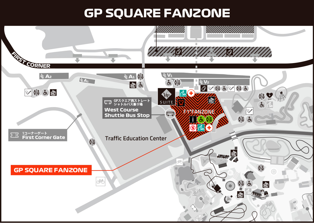 作為日本大獎賽觀賽據點的「GP SQUARE 粉絲區」,匯聚了F1車手出演的官方舞台,以及企業設置的多樣攤位和官方商品店。飲食攤位也非常豐富,是一個即使在比賽之外的時間也能盡情享受的區域。在F1賽程之外,還會舉辦藝術家及知名嘉賓的表演和座談會,讓整天的活動氣氛熱絡非凡。