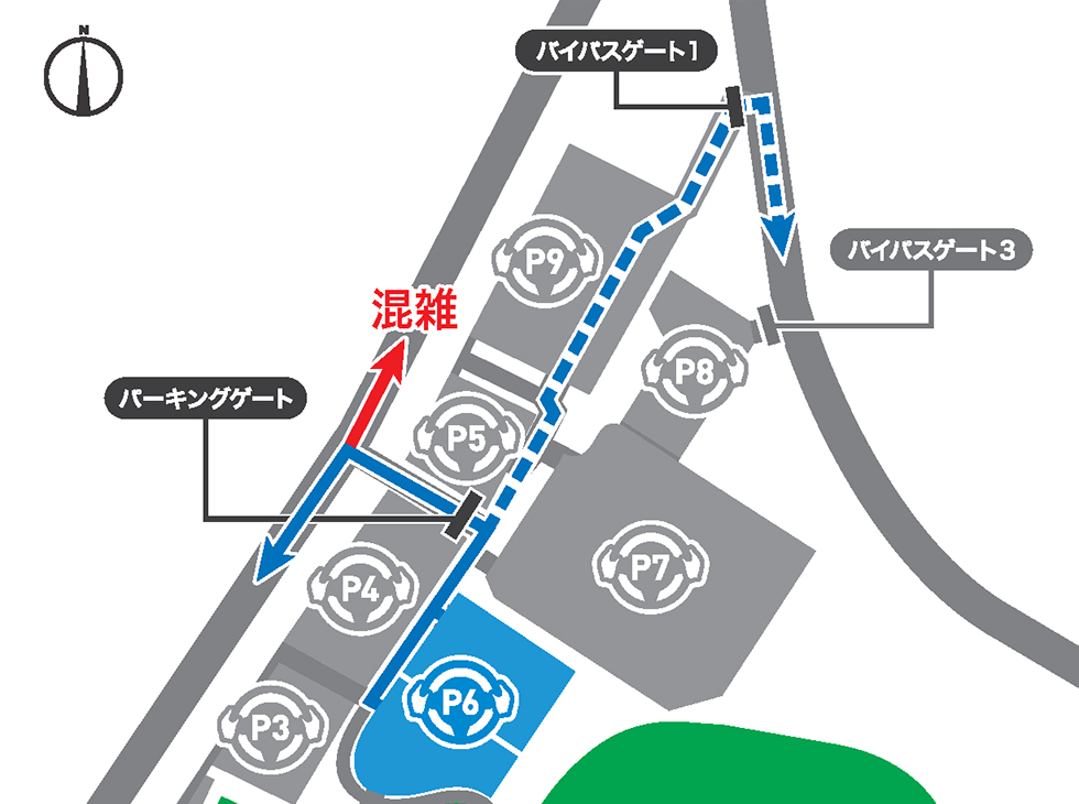 比賽舉辦時,附近的停車場無許可停車或路邊停車成為問題。開車前來的顧客,請使用本公司指定的停車場或鄰近的民營停車場。