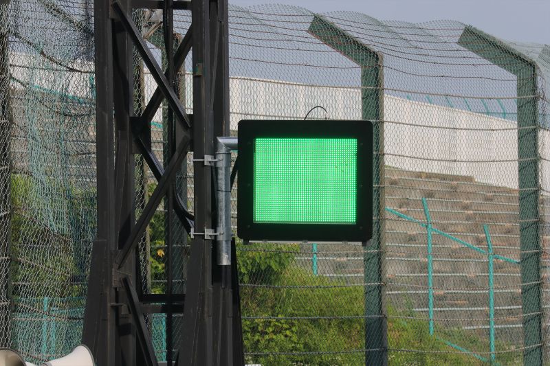 為了讓行駛中的車手了解賽道上的狀況,會以賽道上燈板的顏色來發出信號。