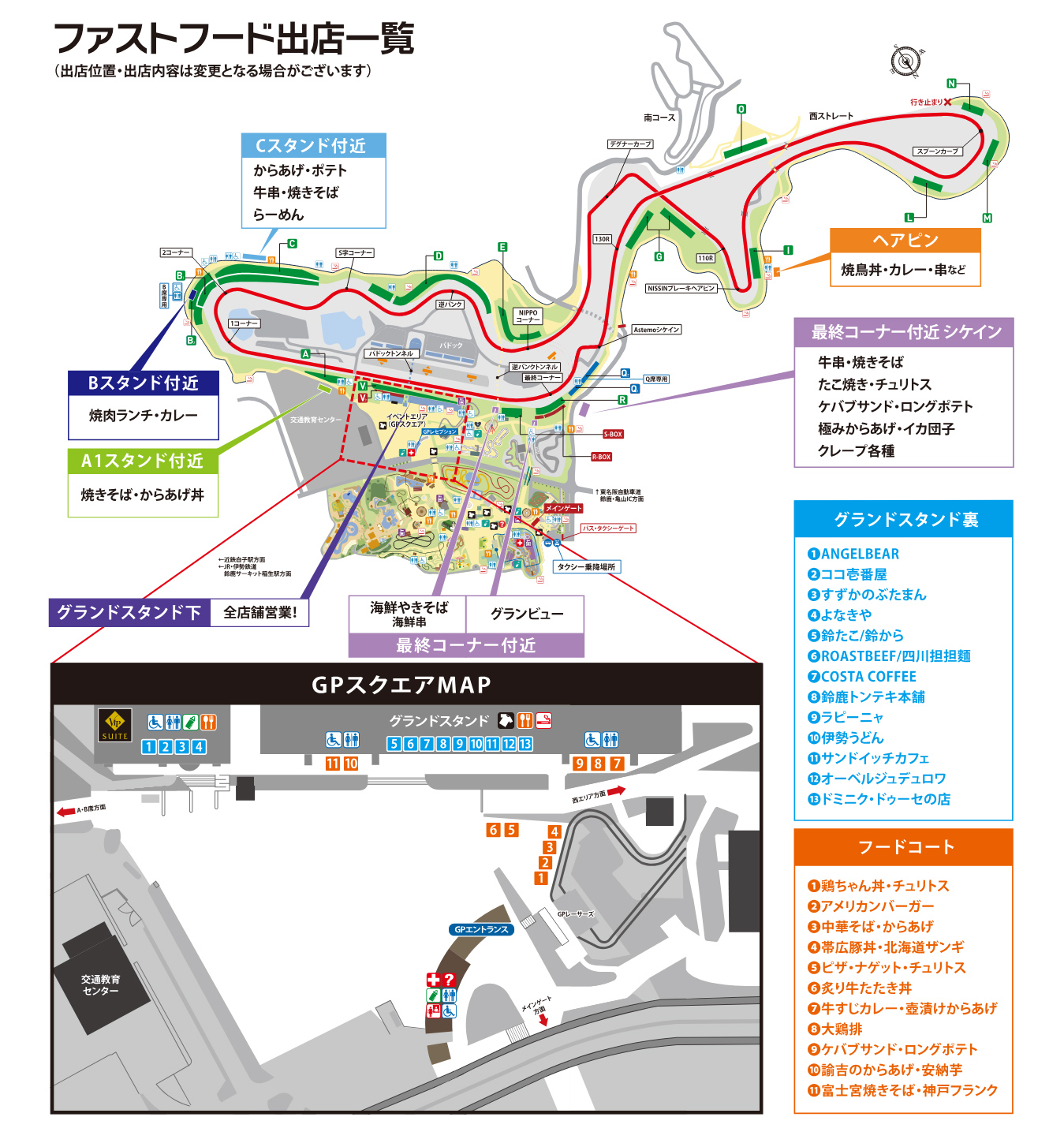 2025年10月27日 初次觀賞賽車運動指南 STEP.5 首次觀賞賽車運動就從鈴鹿開始! 點擊感興趣的主題! STEP5.推薦美食資訊 在JAF大獎賽舉辦期間,除了公園及GP廣場內,還可以在賽道旁享受各種美食。 關於公園內的餐廳,詳情請見這裡 PDF下載請點此 (PDF:698KB) 從鈴響起 鈴鹿的豬肉包 四川擔擔麵 鈴鹿賽道本舖 前往STEP.6
